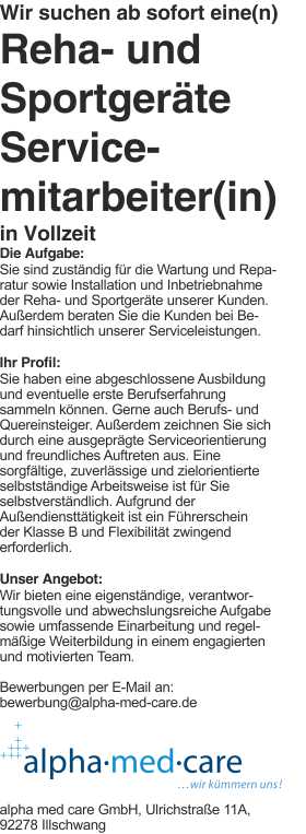 Zur Verstärkung unseres Teams suchen wir zum nächstmöglichen Termin: